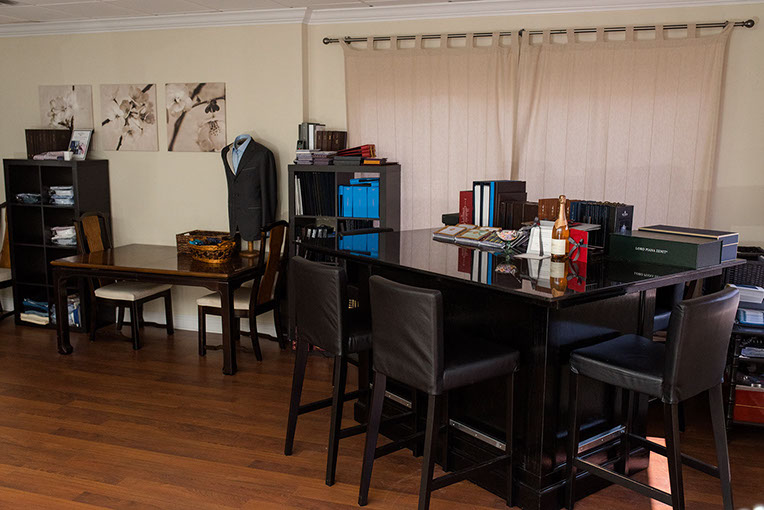 Originally, Bespoke & Co. operated out of a small tailor shop in Tampa, FL.  In September 2011, we searched for a brick and mortar facility more conducive to our needs and the needs of our clients.  We relocated to South Tampa and renovated the space that we currently occupy at 3305 W. Bay to Bay Boulevard.  Just a short drive from downtown Tampa, Bay to Bay has become one of the most active thoroughfares in South Tampa.  We strived to create a more welcoming, lounge like environment where our clients feel comfortable hanging out, attending events or just stopping by to say hello.  Our 1200 sq. ft. space is complete with a full kitchen and bar.  We have a large screen television which is usually tuned to ESPN or the Golf Channel and we offer wifi for our tech obsessed clients.  While we operate by appointment, clients and friends typically stop by for the chance to run into their favorite local professional athlete or media personality.