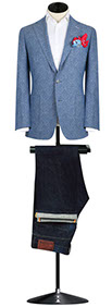 Our denim package is for that business casual entrepreneur who makes their own rules.  It includes one custom made blazer or stylish sport jacket, one custom tailored, fine cotton shirt, and one custom designed jean.  Selecting from a seemingly endless variety of fabrics allows this package to be uniquely bespoke; just like you.